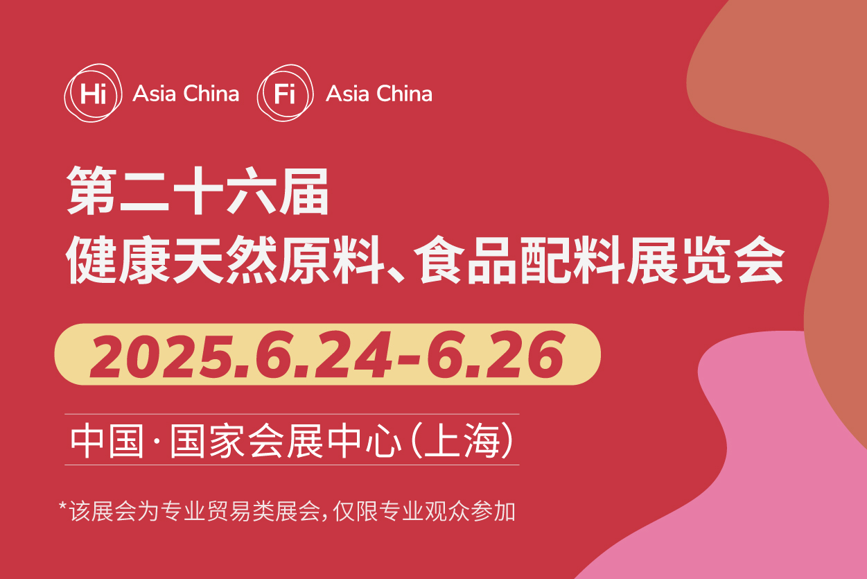 作为食品与健康行业的年度盛会,第二十六届健康天然原料、食品配料展览会(Hi & Fi Asia-China)将于2025年6月24-26日在国家会展中心(上海)隆重举行。